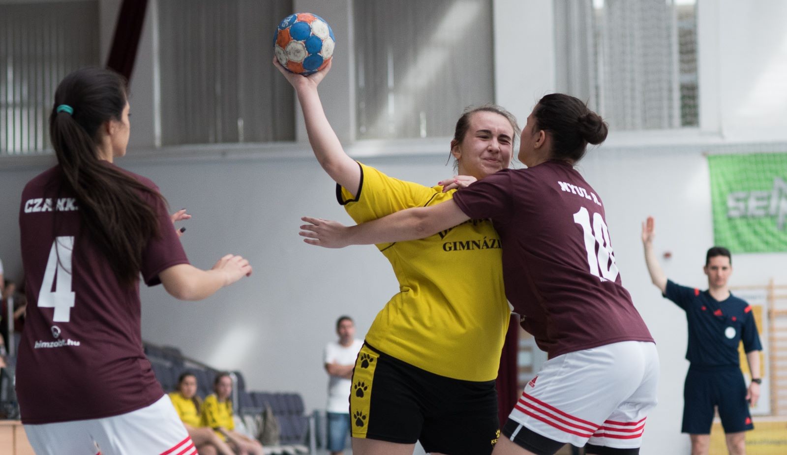 Lányoknál is nehéz mérkőzésekre számítottak. Szintén a csoportba került a tavalyi ezüstérmes sárospataki csapat, valamint a debreceni vegyiparis lányok, akiktől vereséget szenvedtek eddig és egy ismeretlen veszprémi csapat. Már az első mérkőzésen látszott, hogy nagyon összeszedetten, pontosan játszanak és kihozzák magukból a maximumot, így magabiztos győzelmet arattak a debreceniekkel szemben. További lendületet adott, hogy nagy arányú gólkülönbséggel a veszprémiek ellen is sikeresek voltak a gimis lányok. A legnagyobb kihívást pedig a sárospataki csapat jelentette a második napon. Heroikus küzdelemben, óriási mentális összeszedettségüknek is köszönhették az eredményt és végül sikerült a csoda, kiharcolták maguknak a csoportelsőséget jelentő győzelmet. Ezzel az eredménnyel már az elődöntőbe kerültek a bonyhádiak. Nem voltak csüggedtek, amikor vereséget szenvedtek a szentgotthárdi csapattól (későbbi bajnok), mert így is lehetőségük nyílt a bronzéremért játszani az utolsó napon. A bonyhádi gimnázium történetében még nem szerepeltek ilyen előkelő helyen kézilabda csapatok a diákolimpián, így ez is plusz doppingot jelentett nekik, hogy mekkora jelentőséggel bír az idei eredményük. Ennek tudatában terhet csak a tovább tanulásnál 10 többletpontot jelentő 3. hely jelentett. A bronzmeccsen végül a fehérgyarmati lányokat magabiztos játékkal, határozott védekezéssel és pontos támadásokkal győzték le.