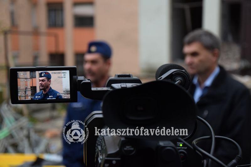 Ács Rezső, Szekszárd polgármestere és dr. Balázs Gábor tű. ezredes, a Tolna Megyei Katasztrófavédelmi Igazgatóság igazgatója sajtótájékoztatót tartottak csütörtök reggel a tegnapi gázrobbanás helyszínén.
