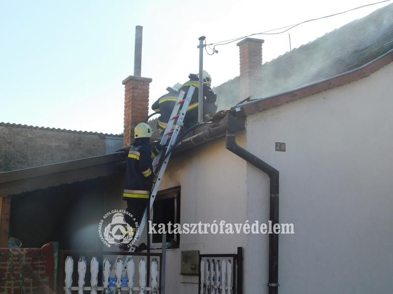 Lakóház tetőszerkezete kapott lángra Mözsön a Kossuth Lajos utcában kedd délután.