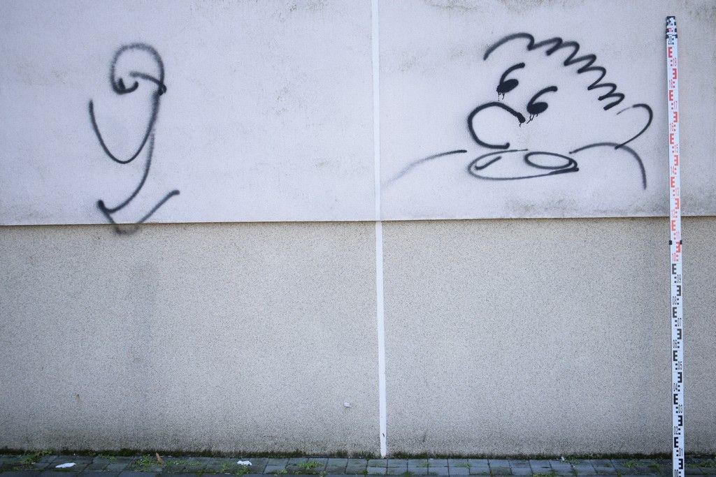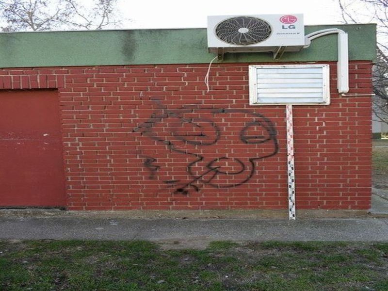 Fekete festéksprét használt, azzal rongálta meg az épületeket. Kihallgatásán beismerte a grefitizést, azt mondta részeg volt, ezért kezdett el festeni. Eljárás indult ellene.