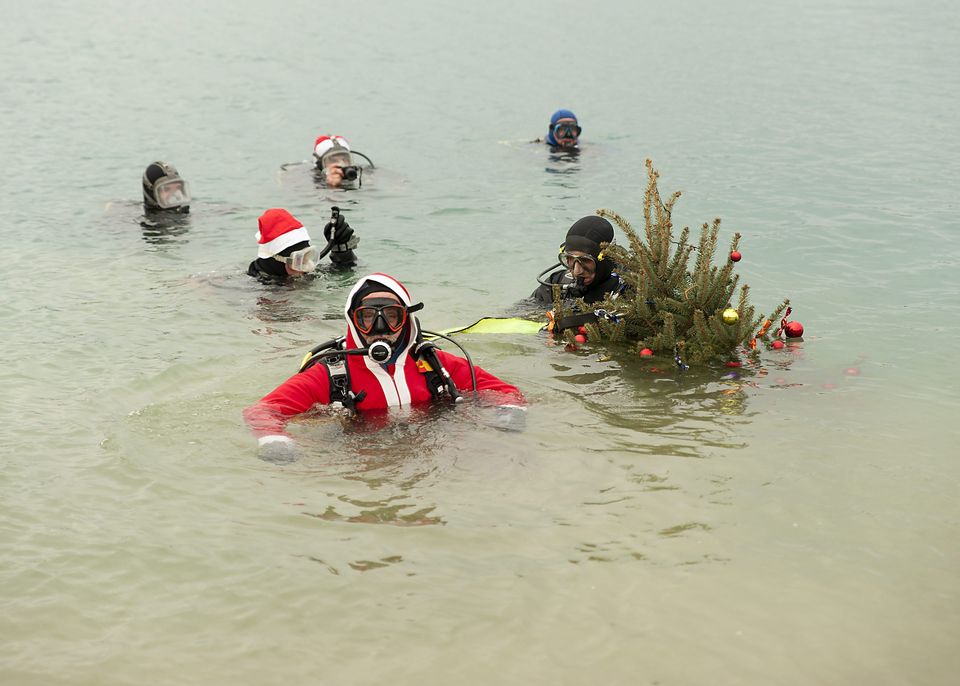 A hegyeshalmi bányatóban rendezték meg idén a hagyományos karácsonyi búvárünnepséget. A nemzetközi találkozó magyar, osztrák és szlovák résztvevői feldíszített fenyőfákat helyeztek el a víz alatt.