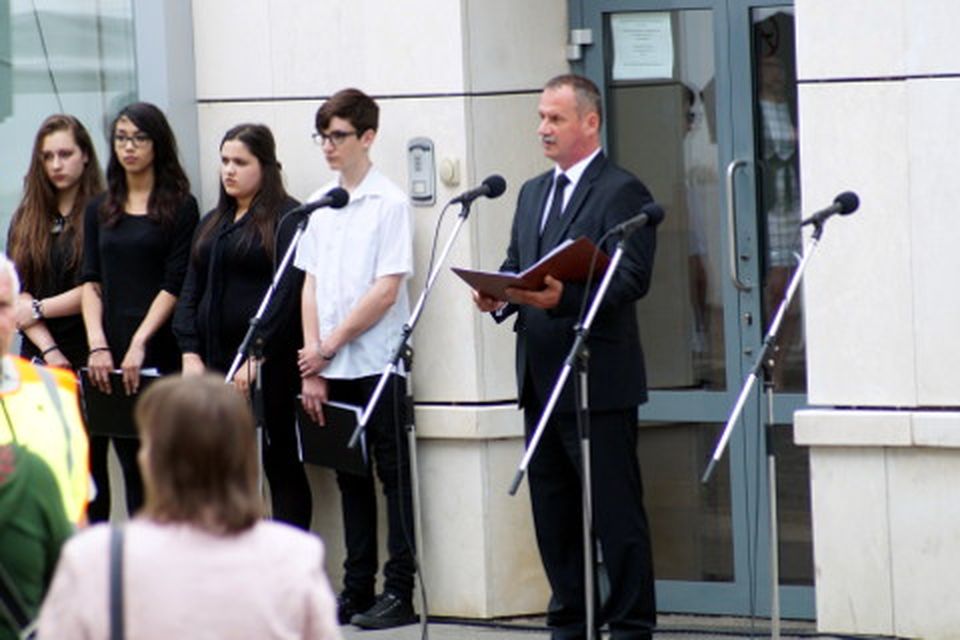 A városi megemlékezésen a Madách Imre Gimnázium tanulói adtak ünnepi műsort, majd az önkormányzat és a jelenlévő szervezetek, közösségek képviselői megkoszorúzták az emléktáblát.