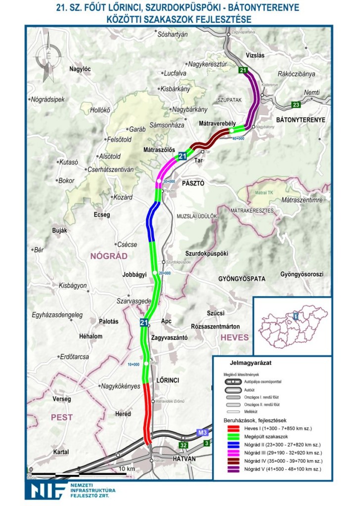 A négysávosítás tavaly tíz kilométeren készült el a Hatvant Salgótarjánnal összekötő 21-esen, a fejlesztés idén öt részre osztva 26,1 kilométeren folytatódik: