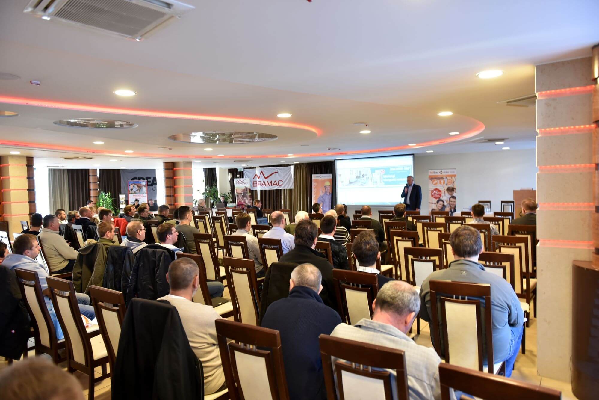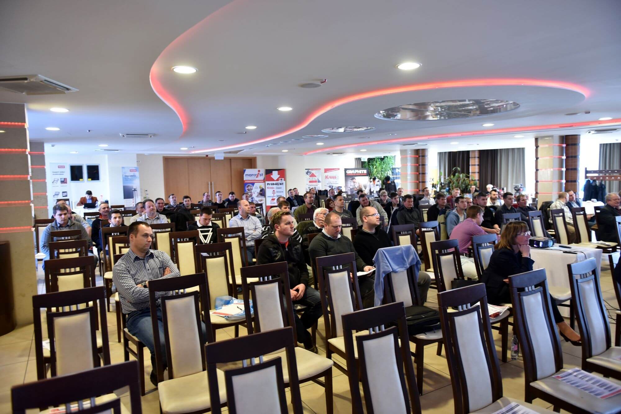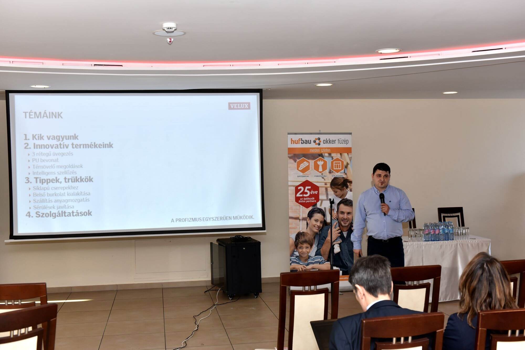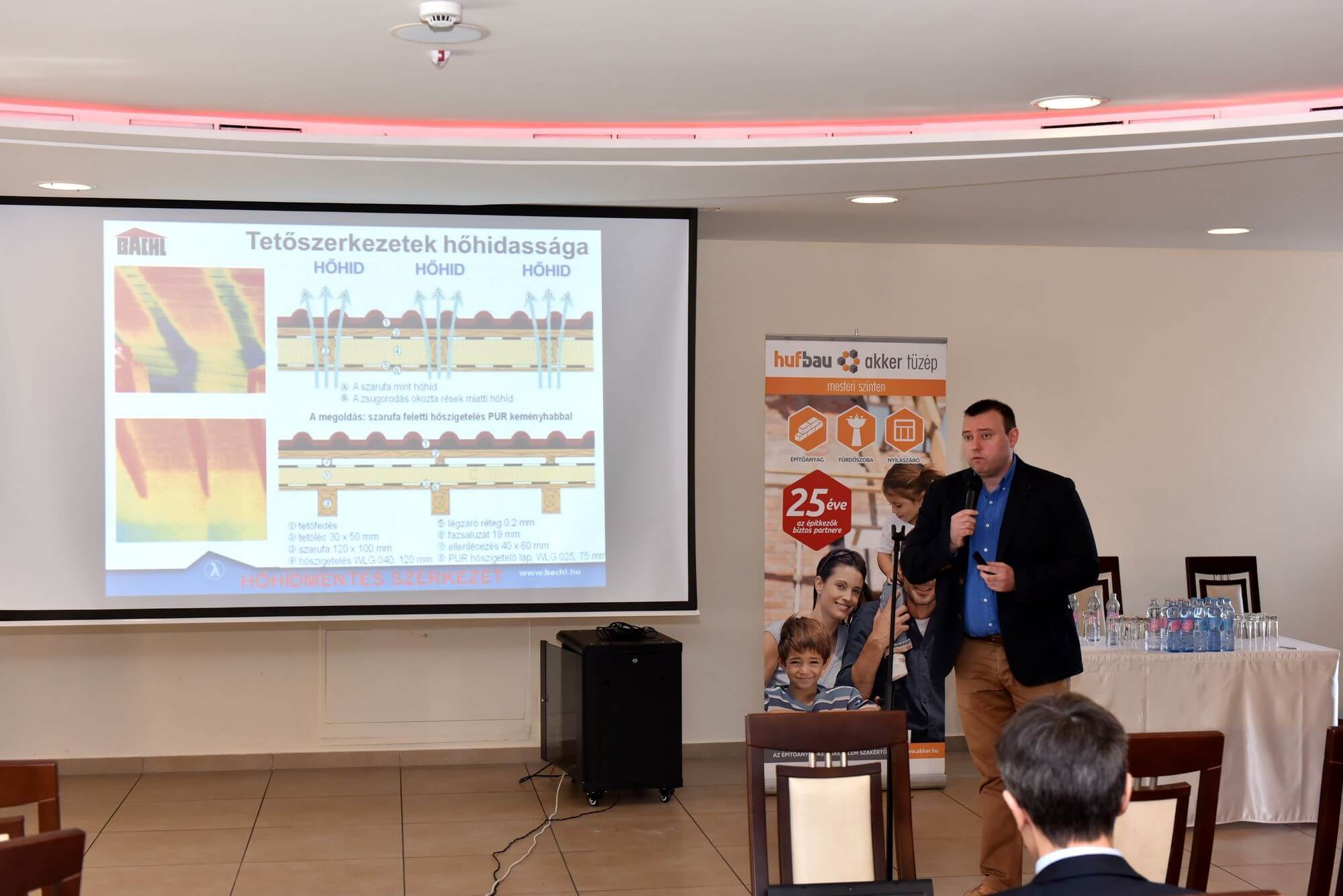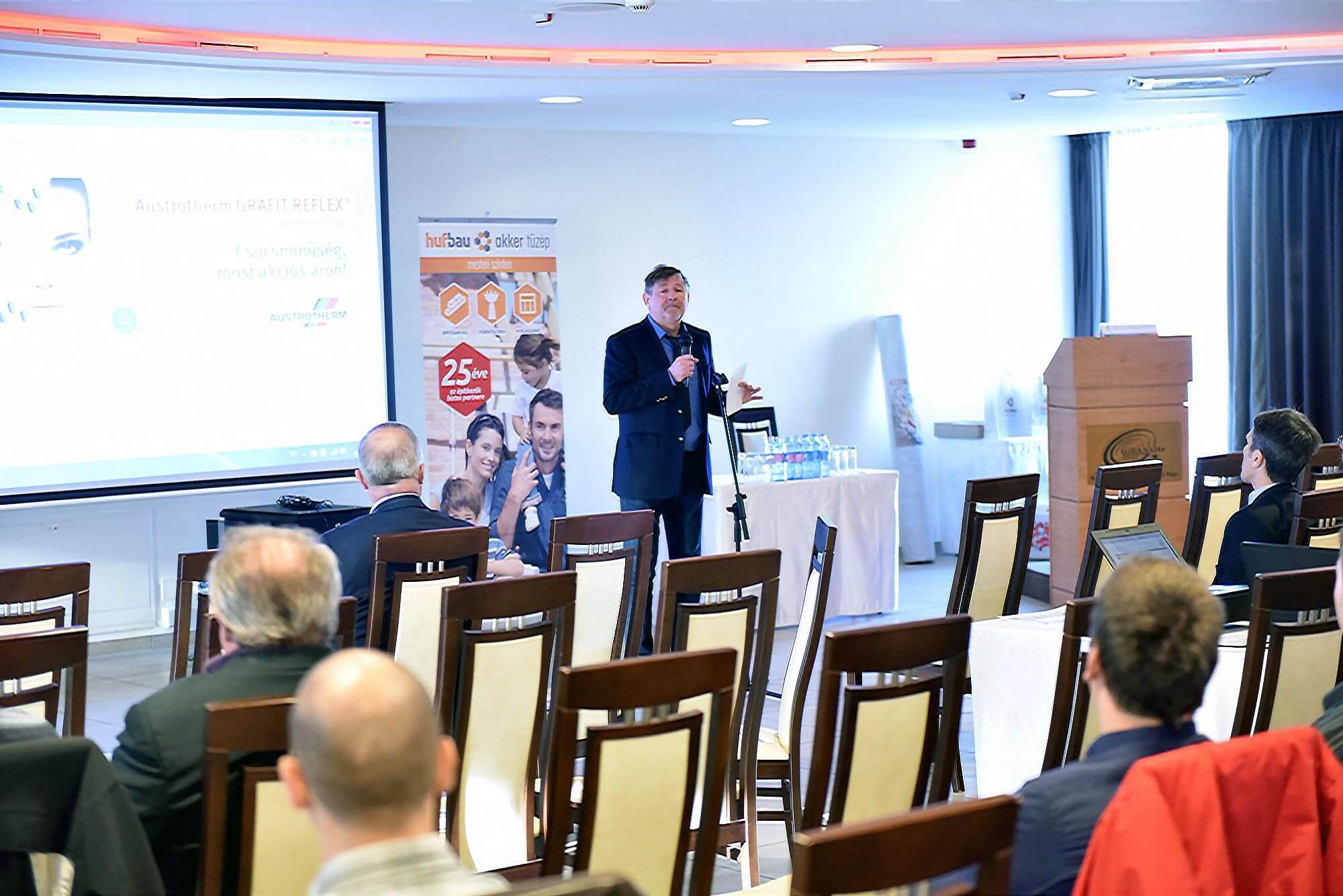 A konferencián gyakorlati bemutatókra is sor került, főszerepet kaptak a tetőfedés mellett a hőszigetelő anyagok, nyílászárók, valamint a kéményrendszerek is. Az első előadást Varga Dénes közgazdász tartotta, aki az Építési Piaci Prognózisról tartott előadásában kiemelte: a növekedés motorjaként az elkövetkező években a lakásépítést emeli ki, de előrejelzése szerint a konjunktúra a korábbihoz képest fele olyan hosszú és fele olyan erős lesz.
