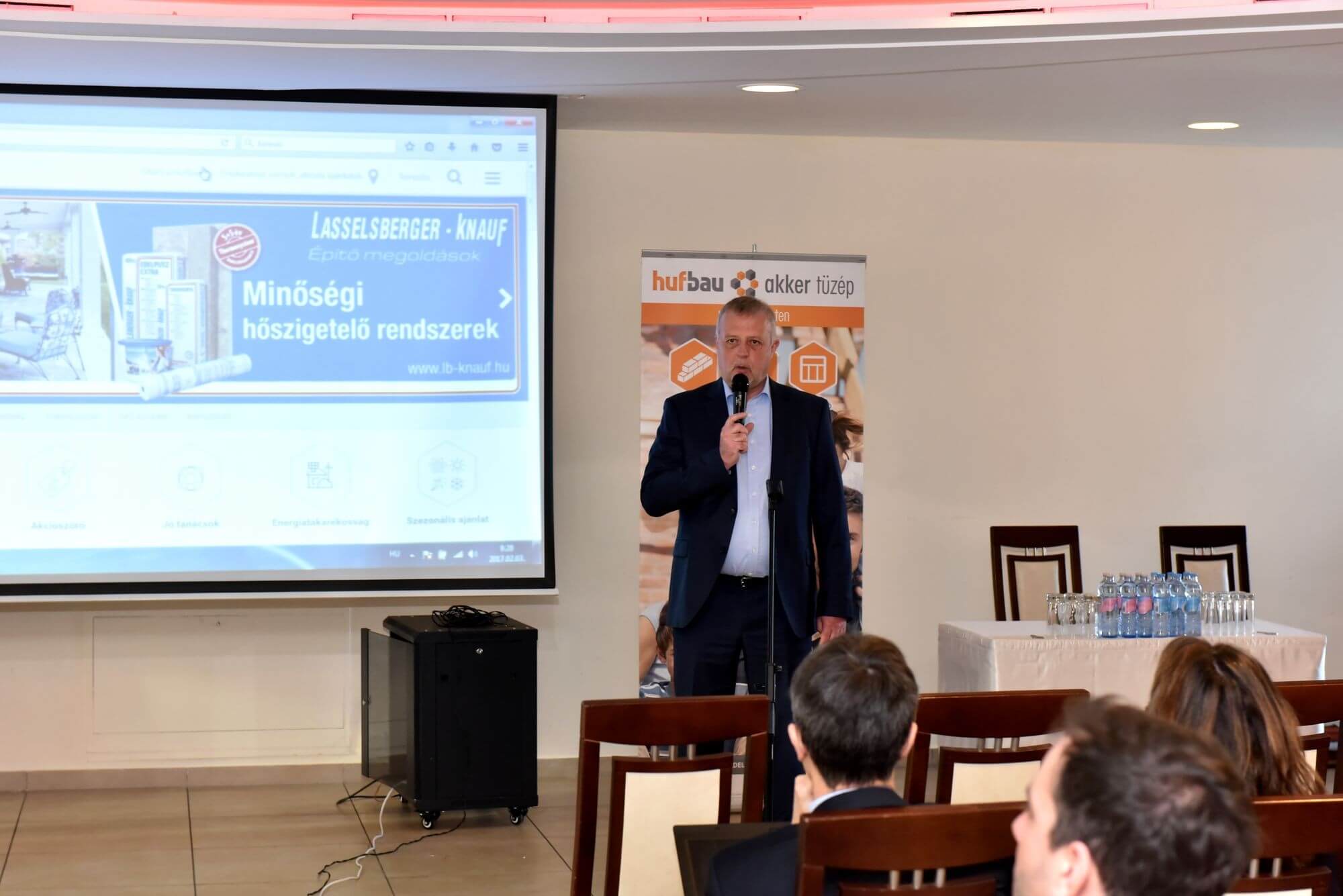 A KNAUF Cégcsoport előadásában a hőszigetelési előírások változására hívta fel a figyelmet. Az uniós direktíva előírásainak megfelelően, a költségoptimalizált energiahatékonysági szintek elérése érdekében 2015. január elsejétől Magyarországon is szigorúbb előírások léptek életbe az épületek hőátbocsátási tényezőire (U-érték) vonatkozóan, vagyis épületeinknek jobban meg kell tartaniuk a meleget. Erre több megoldást is hoztak az előadásuk során.