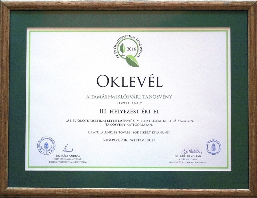 Tanösvény kategóriában a III. helyezett lett a Gyulaj Erdészeti és Vadászati Zrt. Miklósvári tanösvénye a Földművelésügyi Minisztérium és a Magyar Turisztikai Ügynökség közös, „Az év ökoturisztikai létesítménye 2016” pályázatán.