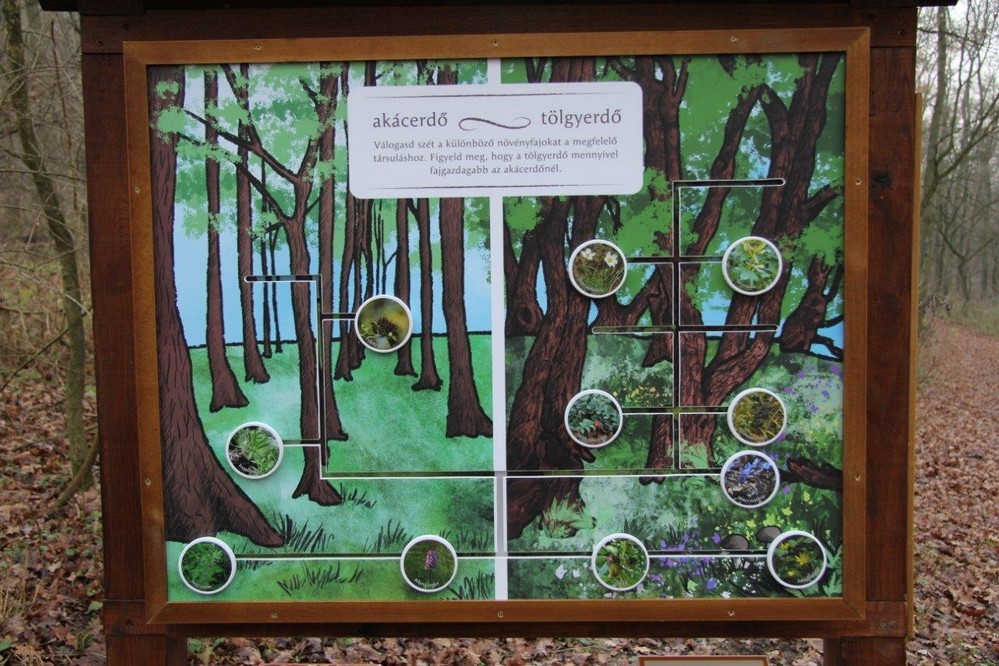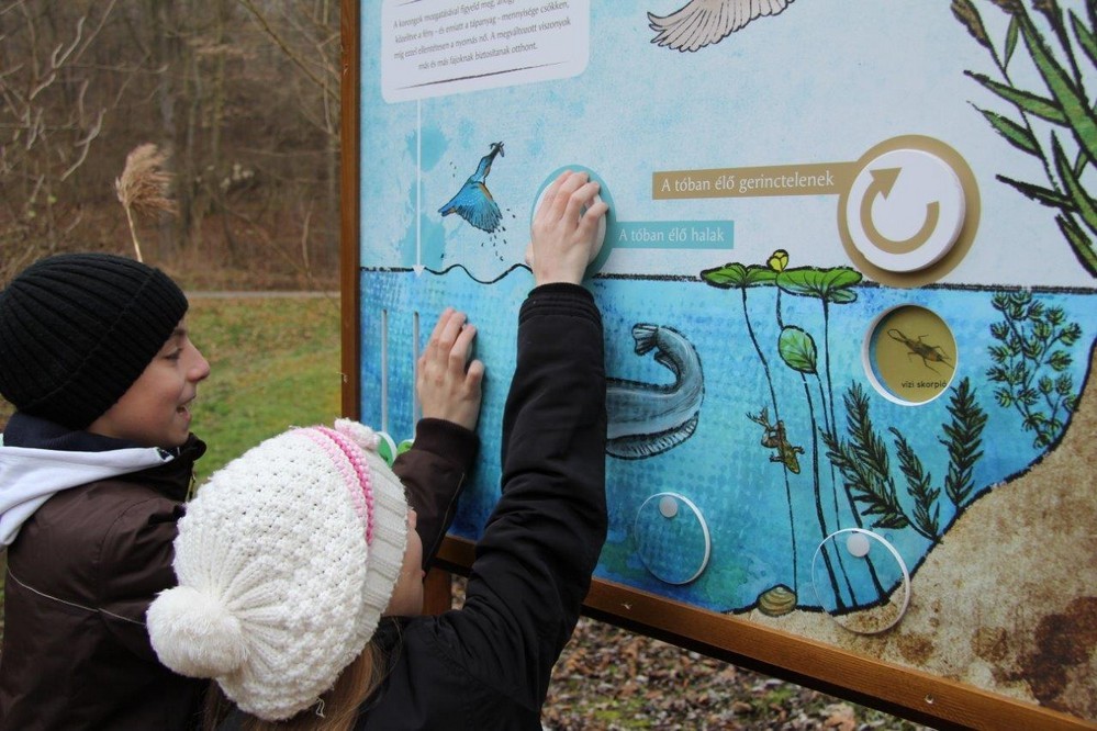 A tanösvény nem véletlenül kapta az elismerést, hiszen nem a megszokott, valljuk be, sokszor unalmas táblákat kell olvasgatni séta közben, hanem interaktív, foglalkoztató anyagot álmodtak ki a tervezők. Egy olyan óriási, "élő társasjáték" ez, amit nem csak a gyerekek, a felnőttek is élveznek.