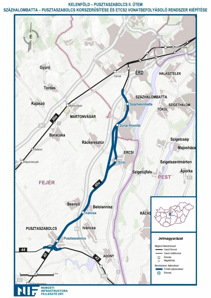 Elkészült a Százhalombatta és Pusztaszabolcs közötti vasúti korszerűsítésés, és ezzel teljessé vált az ország legnagyobb mértékű, bruttó 156 milliárd forintból megvalósult vasúti fejlesztése. – olvasható a NIF Nemzeti Infrastruktúra Fejlesztő Zrt. 07.14-i közleményében. A NIF beruházásában a pályafelújítási munkálatokat a Mészáros és Mészáros Kft. és Vasútépítők Kft. konzorciuma végezte, a biztosítóberendezési munkarészeket pedig a Siemens Mobility Kft. végzi. A projekt uniós és hazai forrás felhasználásával, a CEF (Európai Hálózatfinanszírozási Eszköz) támogatásával valósult meg.