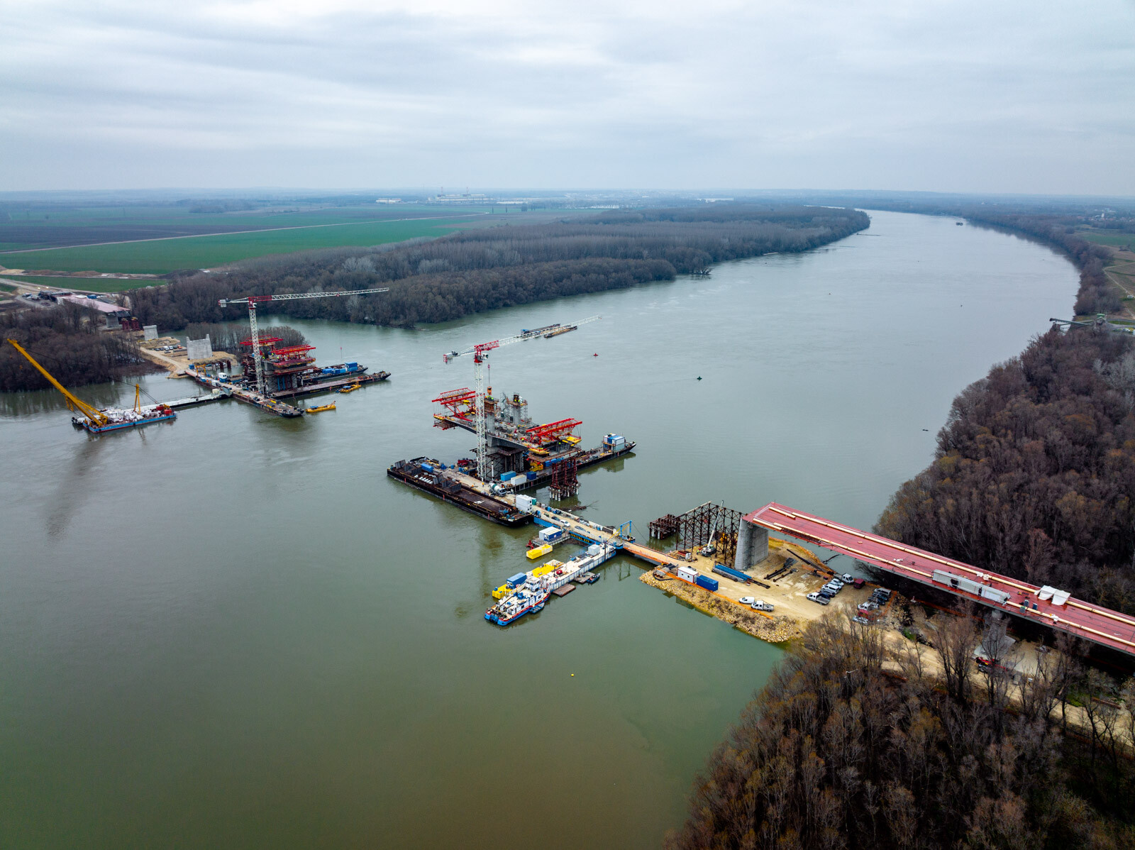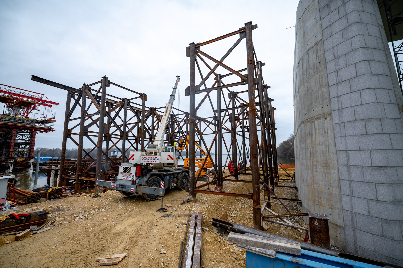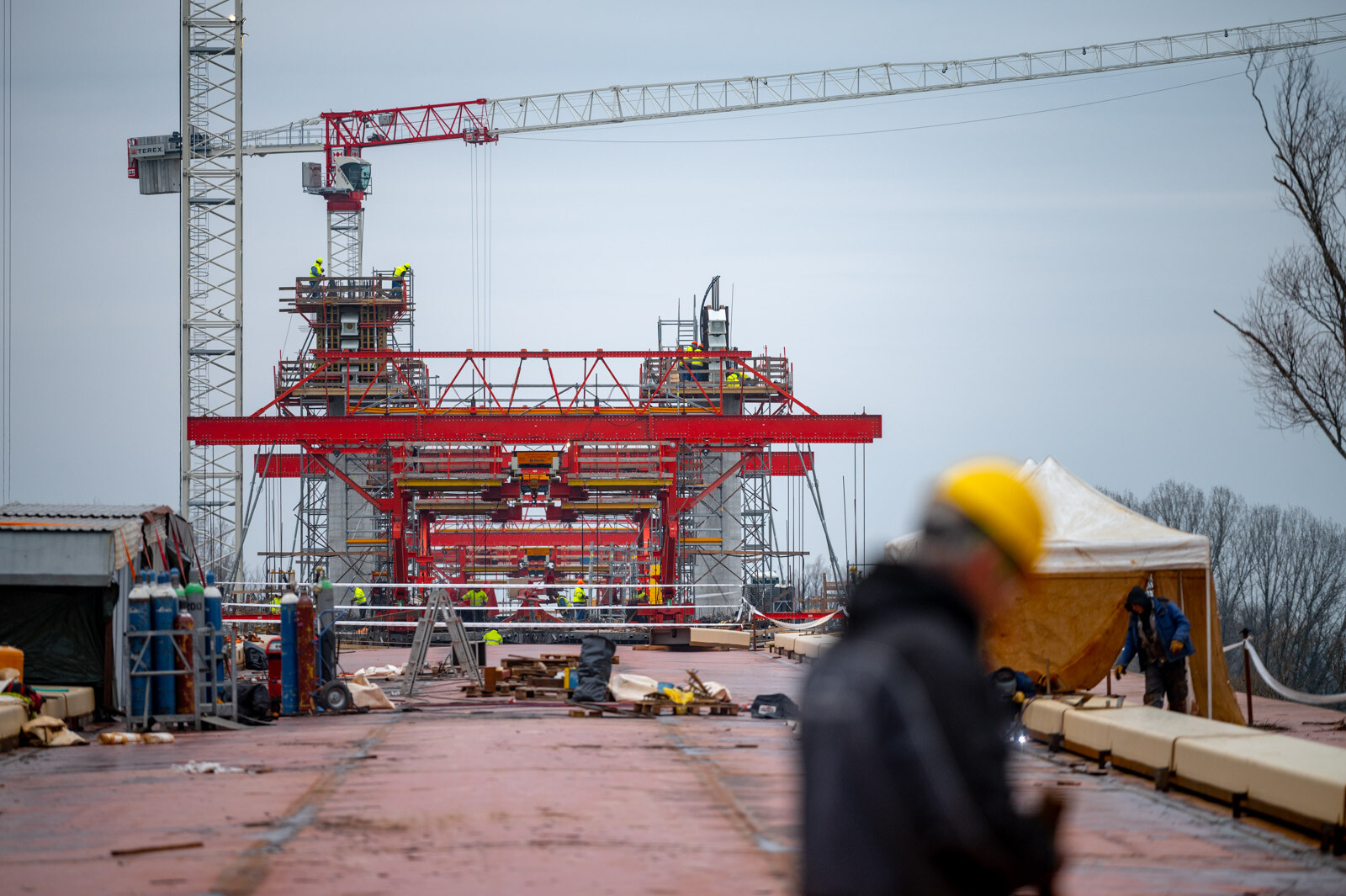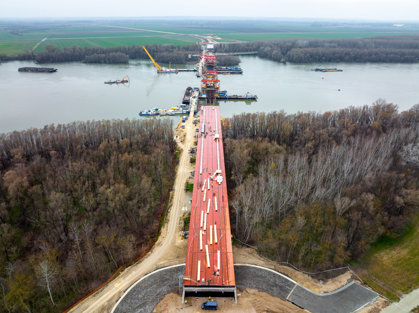A kalocsai ártéri hídon már a korlátokat szerelik; a mederhídon gőzerővel építik a főtartókat; a paksi oldalon pedig zajlik a hídszerkezet tolása a Duna Aszfalt által kivitelezett nagyszabású hídépítő projektben.