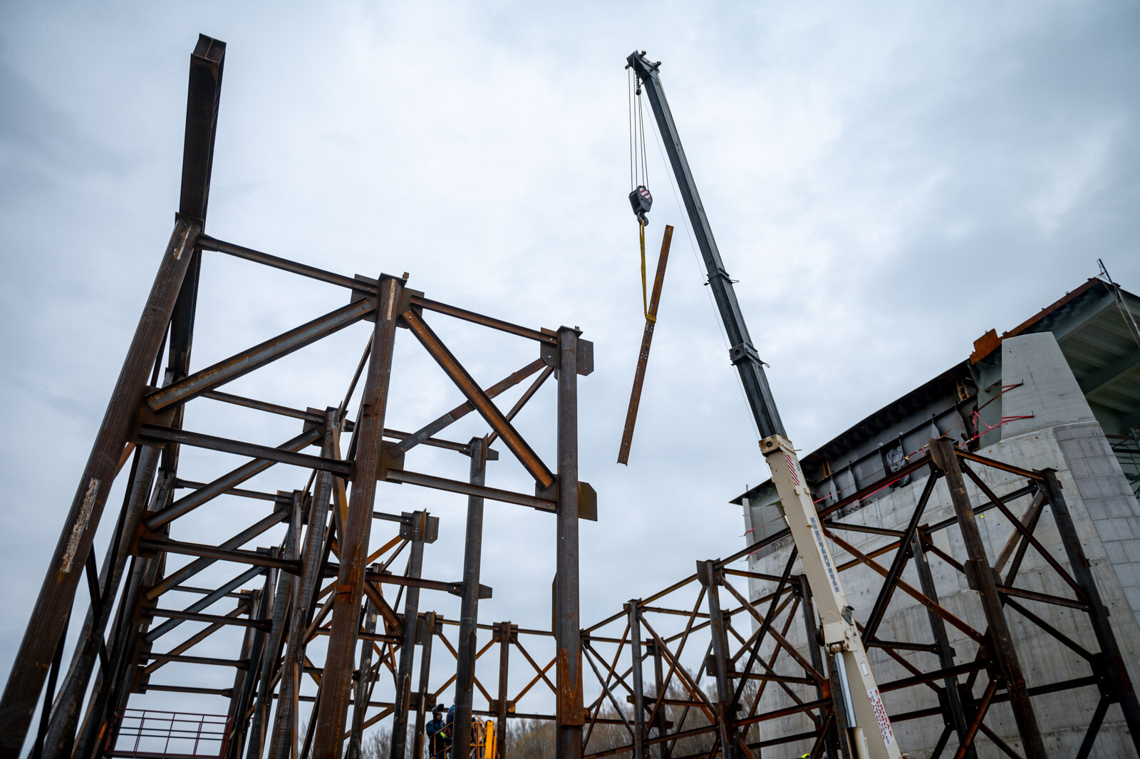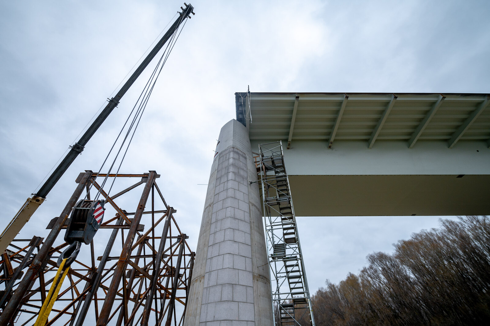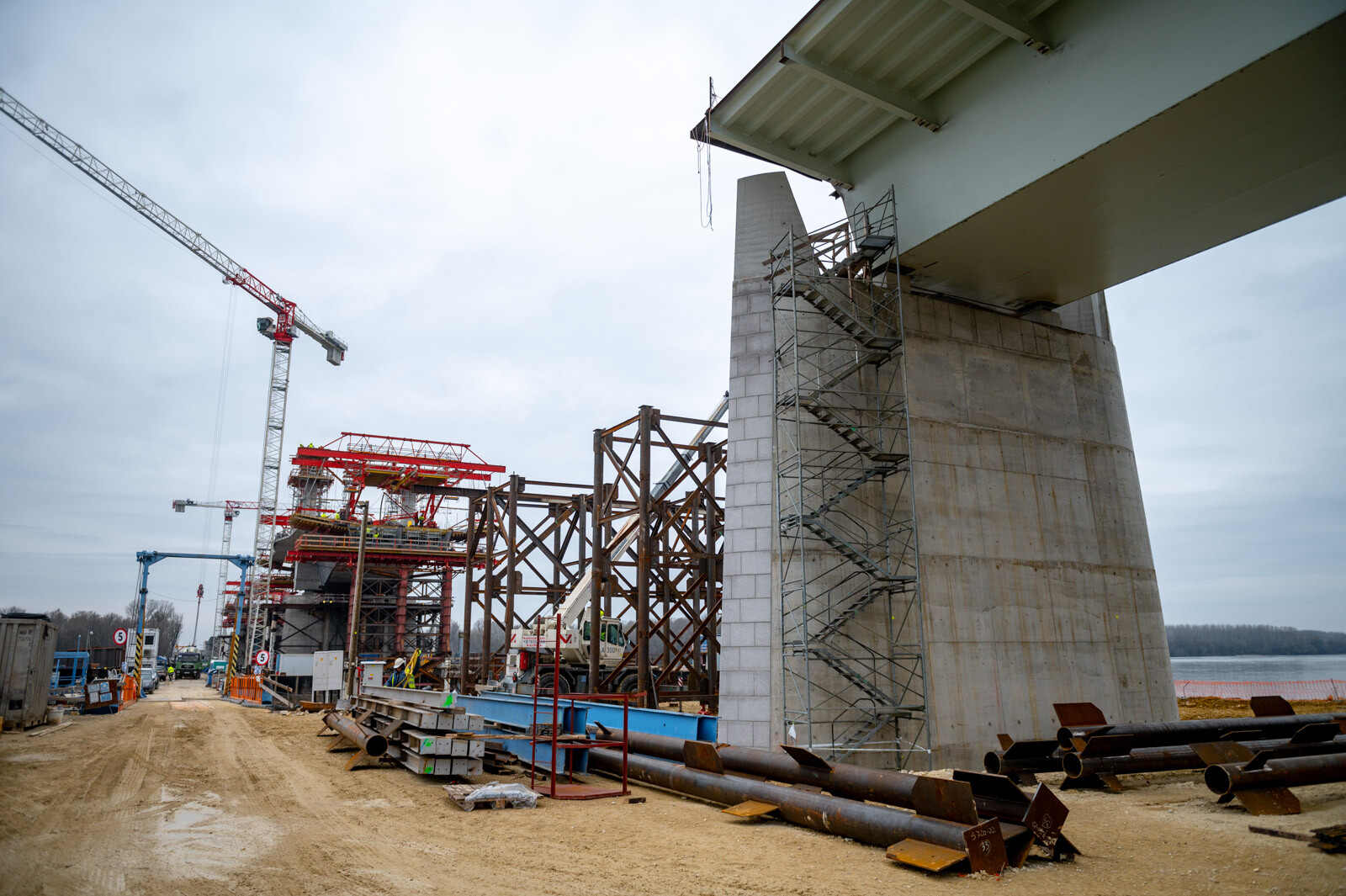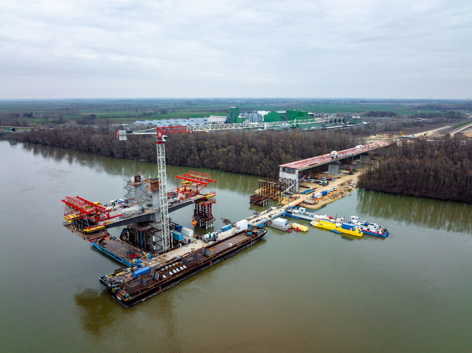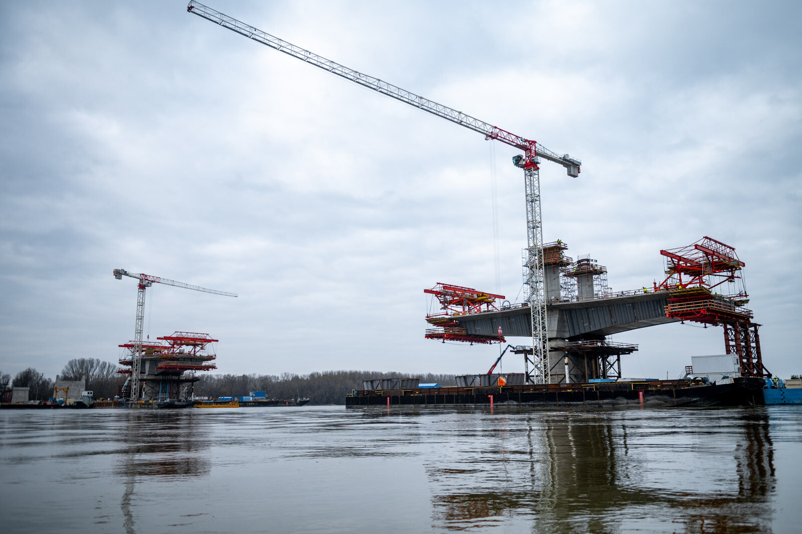 A kalocsai ártéri hídon már a korlátokat szerelik; a mederhídon gőzerővel építik a főtartókat; a paksi oldalon pedig zajlik a hídszerkezet tolása a Duna Aszfalt által kivitelezett nagyszabású hídépítő projektben.