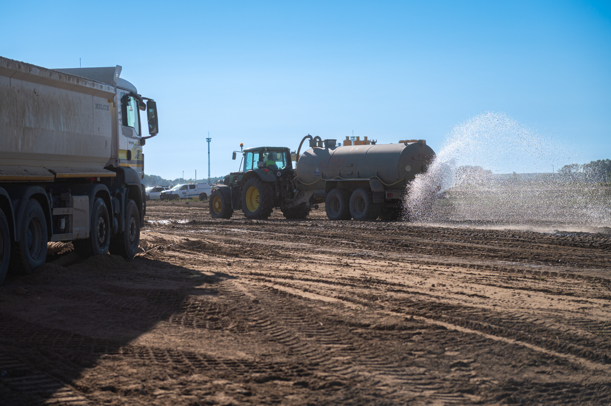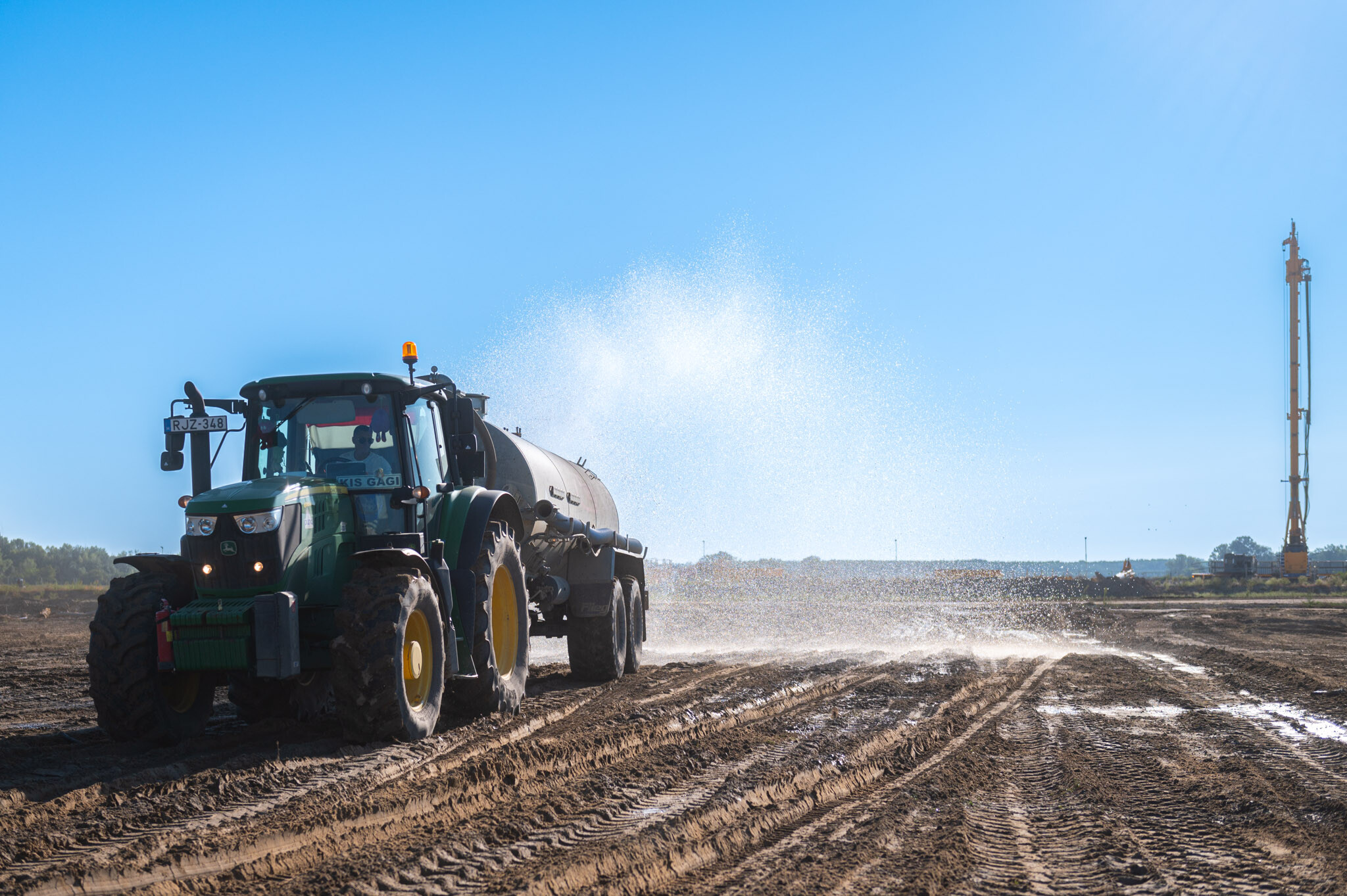 „Jelenleg 27 darab tehergépkocsi szolgálja ki a 15 darab munkagépet, mindezt folyamatosan több mint ötven fős humánerőforrással, műszaki irányítás mellett.” Hozzátették, a szerződés ezen szakaszában 600 ezer köbmétert meghaladó földmennyiség kerül kitermelésre és kezelésre. A földanyagot az erre kijelölt átmeneti lerakóterületen helyezik el ideiglenes jelleggel.