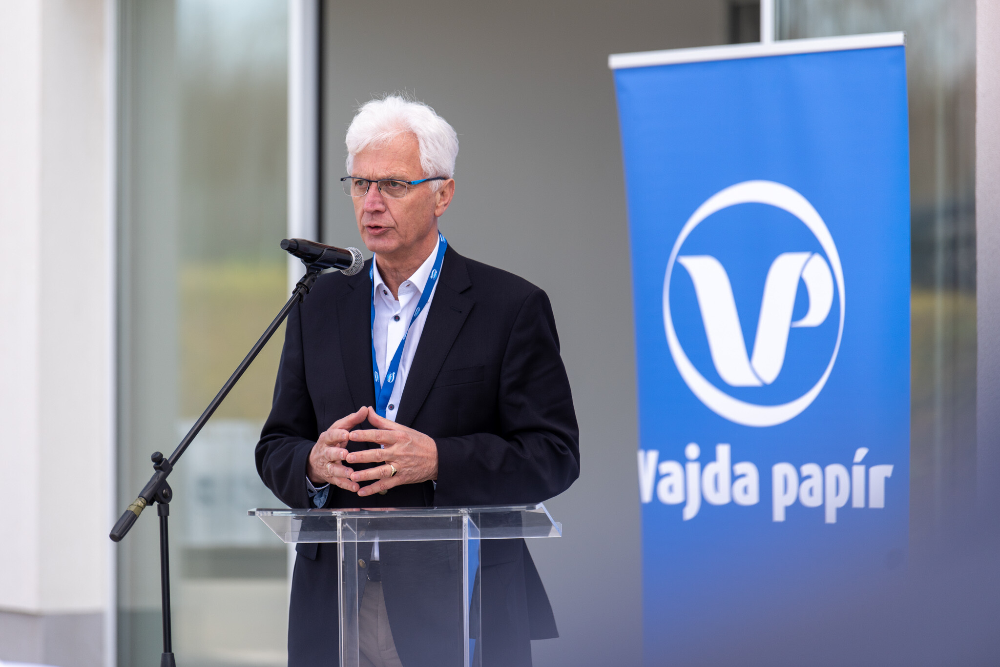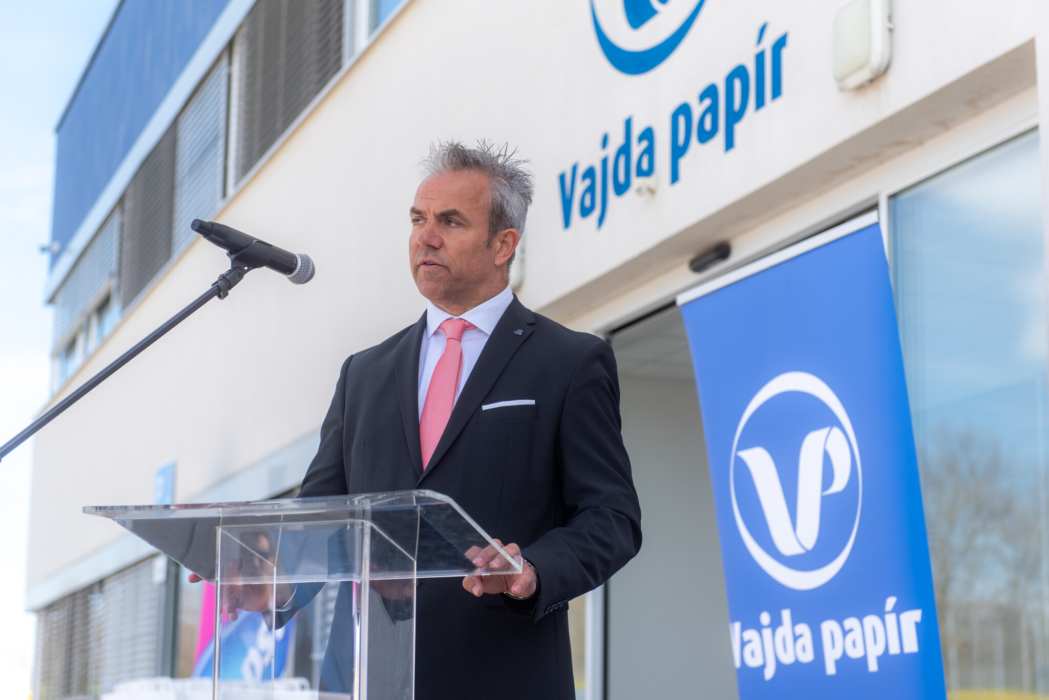 Az táblaavató eseményen Vajda Attila, a Vajda-Papír ügyvezető igazgatója elmondta, hogy a cégcsoport 2018 óta saját maga termeli dunaföldvári üzemében a gyártáshoz szükséges higiéniai alappapír jelentős részét. Felidézte, a gyáregység bővítésének ütemeit és azt is, hogy a legutóbbi beruházás része volt a 14 212 négyzetméter alapterületű új üzemen kívül, közel 10 ezer négyzetméternyi út megépítése is. A 16 milliárdos fejlesztéssel, amelyhez a kormány 5,5 milliárd forintnyi támogatást biztosított, háromszorosára növelhették a cég alappapír gyártási kapacitásait. Ezáltal Európa legnagyobb higiéniai papírgyártó kapacitása jött létre Dunaföldváron. Vajda Attila kiemelte, ez az egyik legzöldebb vállalat Magyarországon, ipari termelő vállalatok közül elsőként bocsátottak ki zöld kötvényt és készítettek ESG jelentést. Az ügyvezető igazgató úgy vélte,