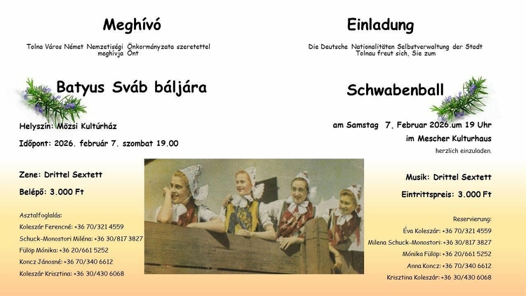 Tolna Város Német Nemzetiségi Önkormányzata Batyus sváb bált szervez a Mözsi Kultúrházban.