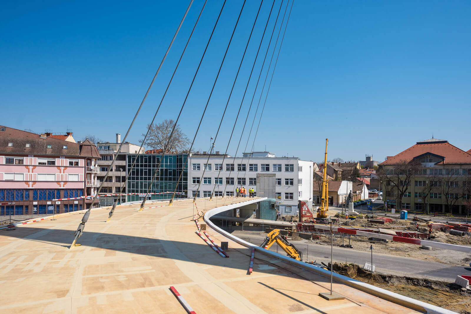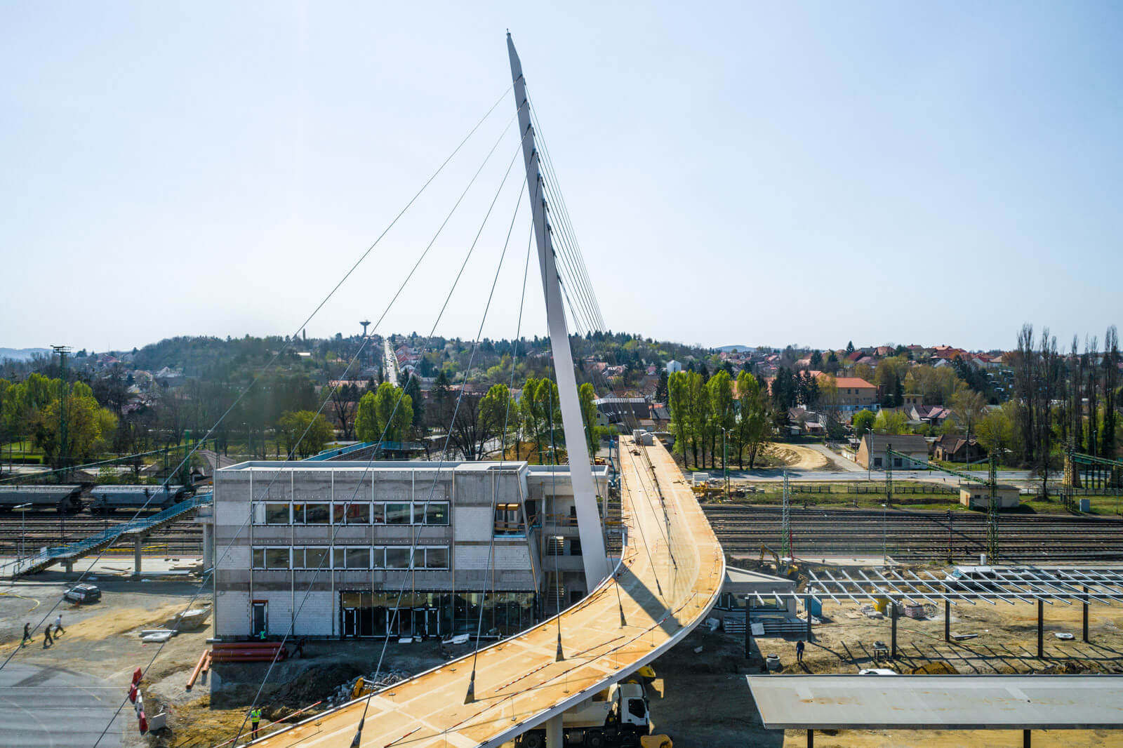 Elmondta: május elején a kerékpáros-gyalogos hidat ideiglenesen forgalomba helyezik, bár nem teljes szélességében, hanem félpályán, illetve az ikonikusnak szánt felvezetőrámpák sem készültek még el, így a vasúti peron és a Gilice utca között ideiglenesen lépcsőtornyok segítségével használhatják a gyalogosok.