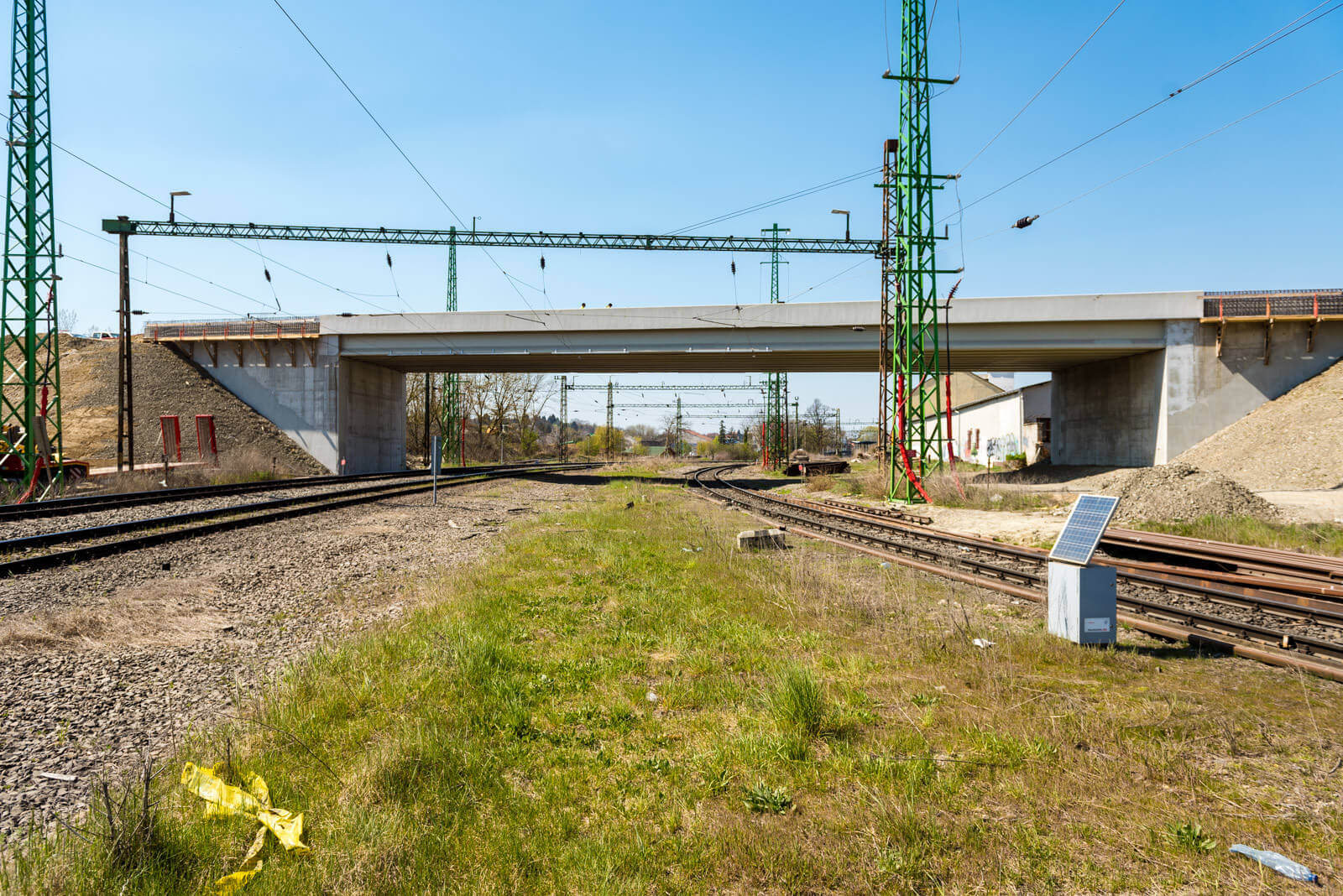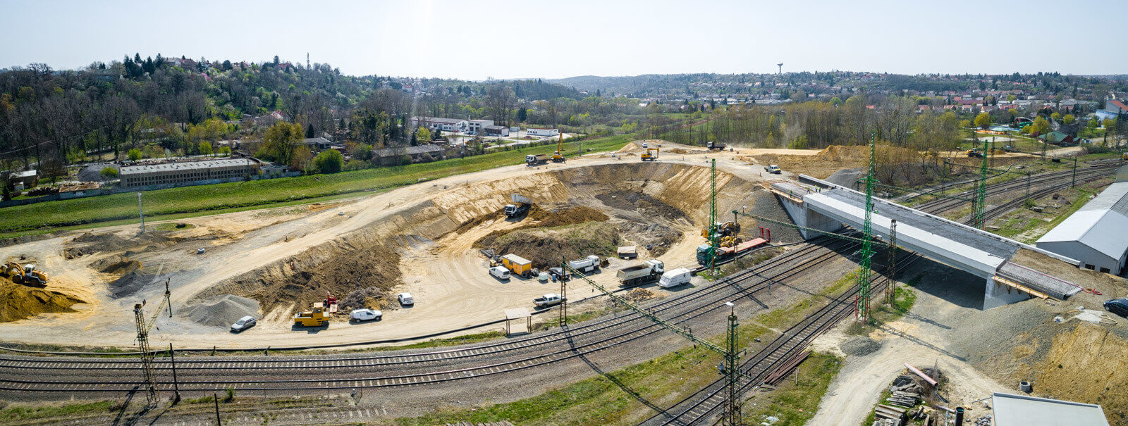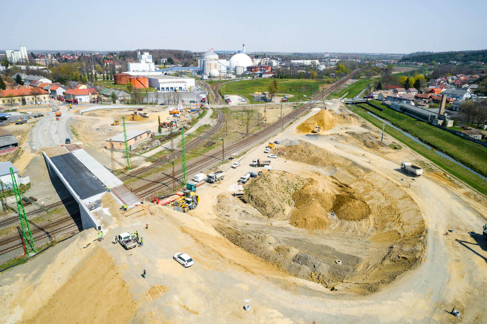 A csatlakozó töltések kialakításánál ezzel együtt még több feladat is hátravan: a déli oldalon földmunkákkal haladnak, az északi oldalon pedig a csatlakozó körforgalmat építik ki, illetve még az ehhez csatlakozó aszfalt és térőburkolat kialakítására van szükség (a CKT-réteget már lehelyezték, illetve a szegélyeket is).