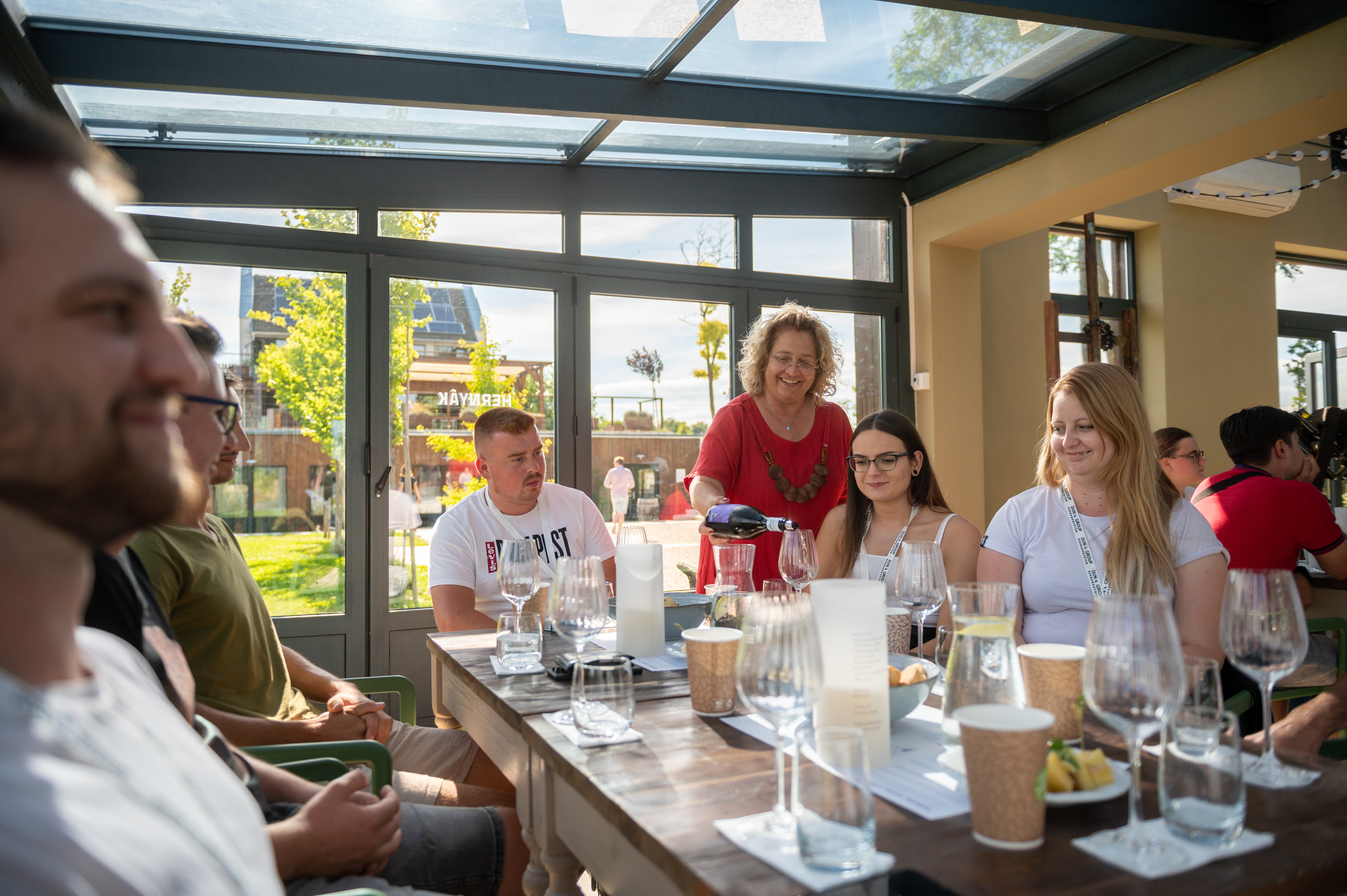 A 30 fokos nap zárásaként a szabadegyetem csapata az etyeki Hernyák Birtokon lazított egy hűvös pincelátogatással és egy hangulatfokozó borkóstolóval, majd kifejezetten emelkedett hangulatban tértek vissza Budapestre, ahol folytatódott a kikapcsolódás.