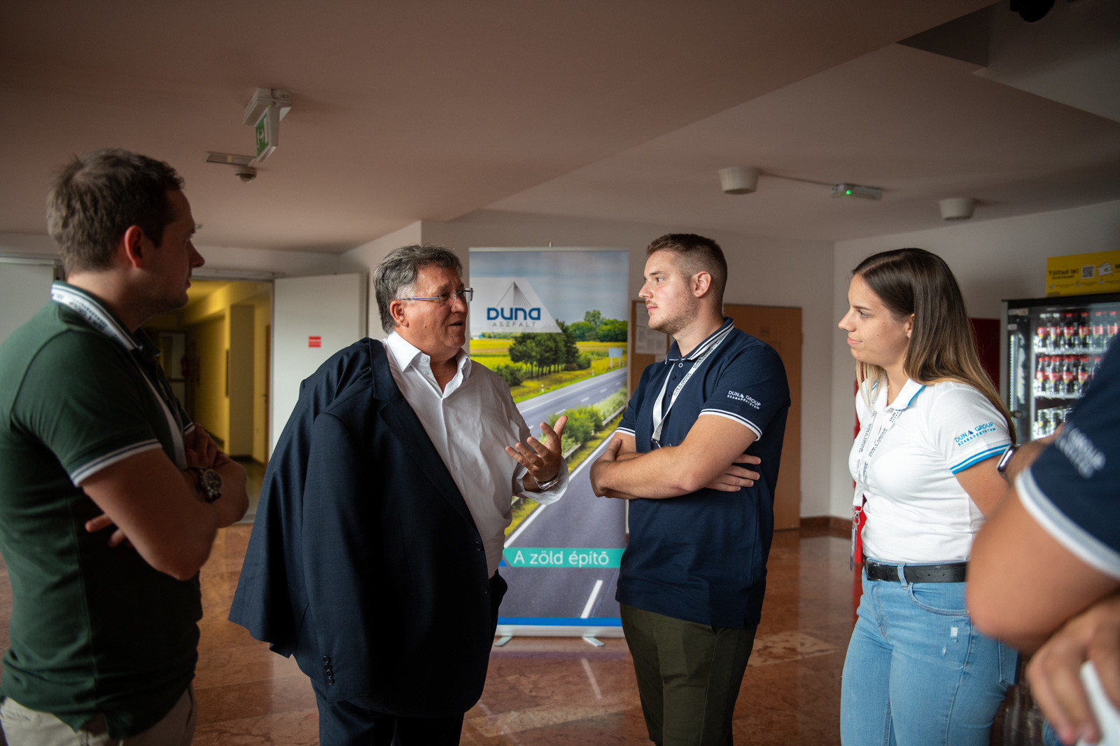 A hallgatók kérdéseire válaszolva a Duna Aszfalt három évtizedes történetéről és a fejlődéshez szükséges alapértékekről is beszélt.