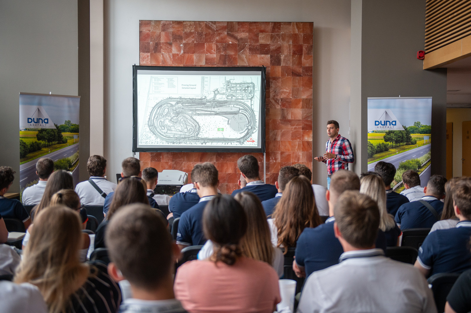 Ezt követően az előadásokon az európai szinten is egyedülálló zalai tesztpályáról, a 83-as út projektjéről és a Duna Csoport által végzett hídépítésekről is szó esett. (A cégcsoport jelenleg az M4-es és az M44-es Tisza-hídjain, a budapesti Déli összekötő vasúti híd rekonstrukcióján és a Kalocsa-Paks Duna-híd építkezésén is dolgozik.)