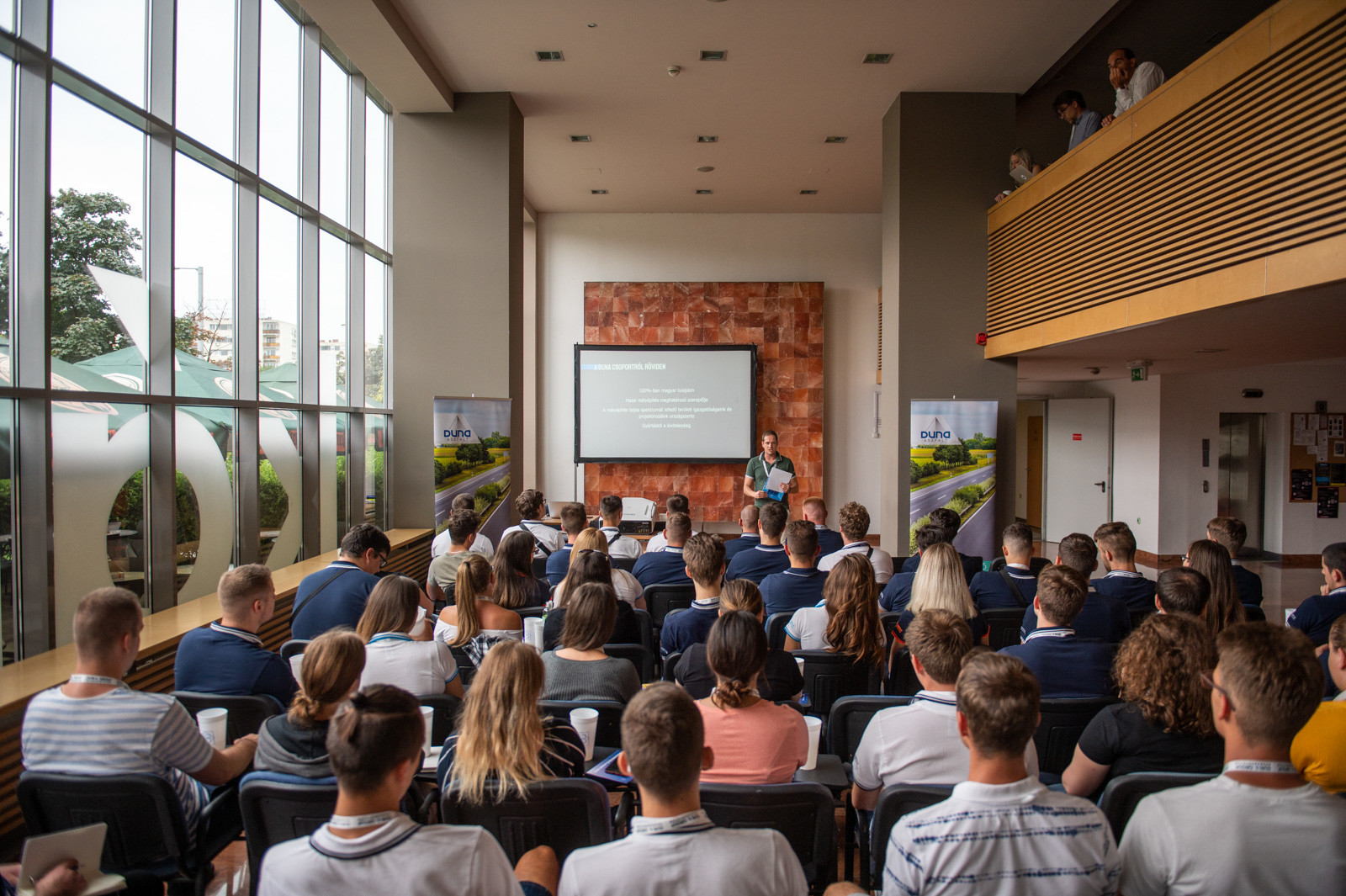Az első nap a fővárosi Kármán Tódor Kollégiumban indult, ahol a 70 résztvevőt a szakma legfrissebb trendjeit bemutató szakmai előadások előtt a Duna Group tulajdonosa, Szíjj László köszöntötte.