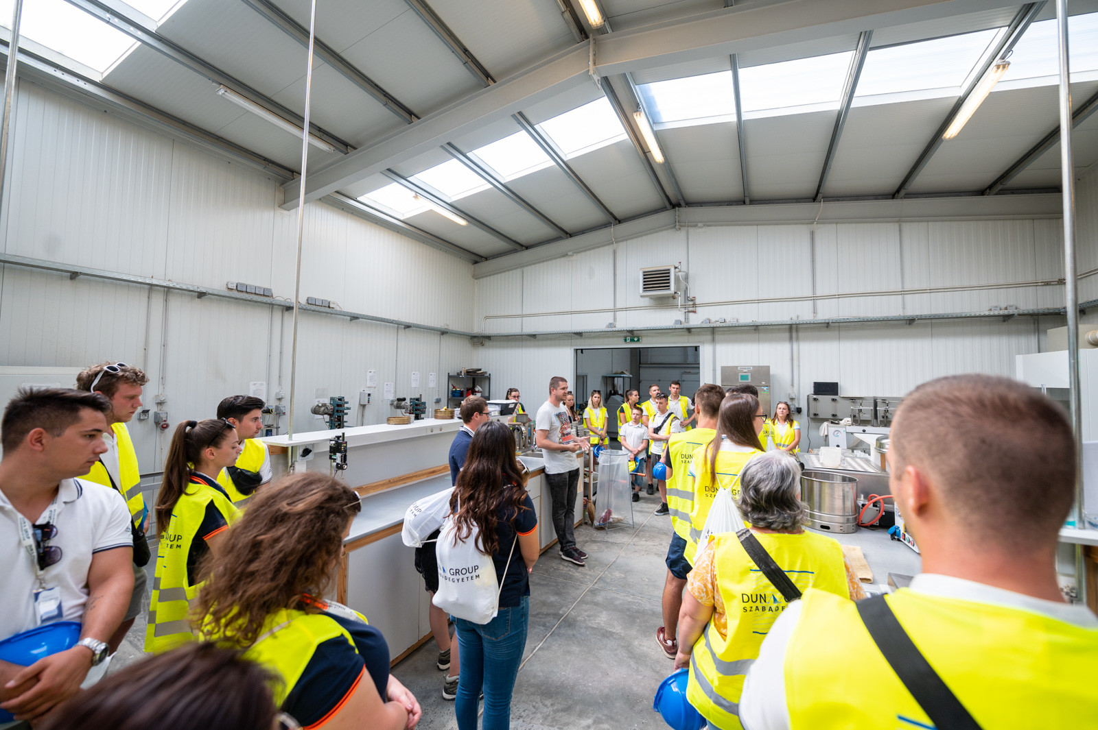A második napon a Duna Group (és egyben Magyarország) egyik legkorszerűbb aszfaltkeverőtelepére látogattak el Tét mellé, mely a szomszédos 83-as, Győr-Pápa gyorsforgalmi út építkezését is ki fogja szolgálni. Itt a hallgatók részletesen megismerkedhettek a munkafolyamatokkal, megtudhatták mennyi lépésen kell végigmenni a tökéletes aszfaltig, és a labor feladataiba is betekintést kaptak.
